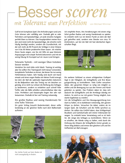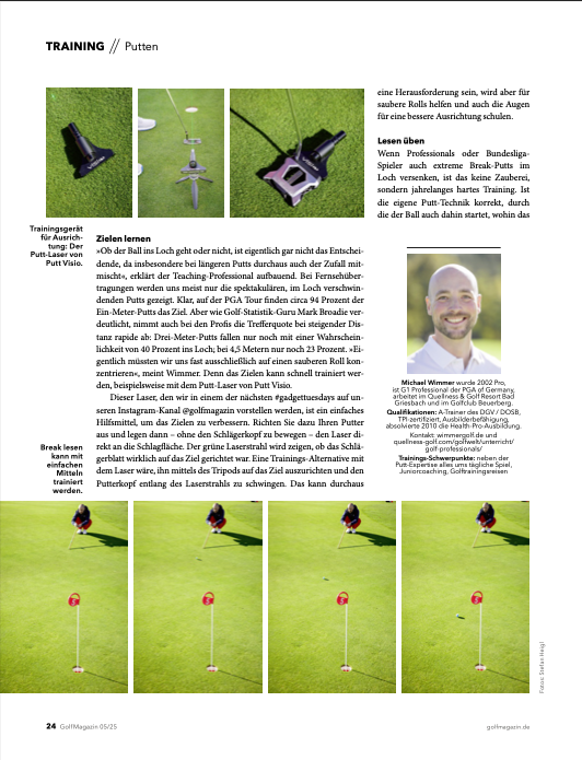 Welches die fünf möglichen Szenarien beim Putten sind, wie sich eiernde Bälle verhindern lassen, warum die Trennung zwischen Zielen und Schießen so wichtig ist und vieles mehr verrate ich den Lesern in der Mai-Ausgabe des Golfmagazins.